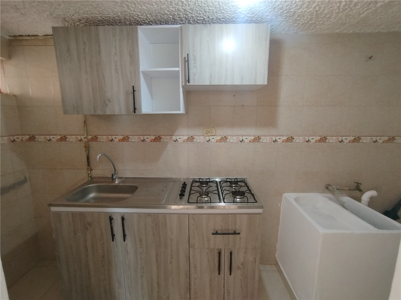Aparta estudio, en el sector de Suba Afidro, una habitación, un baño, sala comedor, cocina semi integral a gas, zona de lavandería, sin garaje ni deposito. El conjunto cuenta con áreas comunes, zona infantil, parqueaderos comunales, vigilancia, salón comunal.