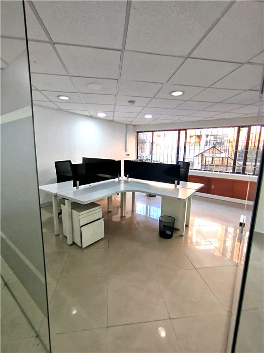 Oficina en el sector de Chico Norte, cuenta con un área de ciento dieciocho metros los cuales están distribuidos así: área libre con cuatro oficinas, área de recepción, un salón abierto entre oficinas, pisos en porcelanato, baño, la administración incluye el servicio de acueducto, la oficina cuenta con un parqueadero, ascensor y vigilancia las veinticuatro horas.