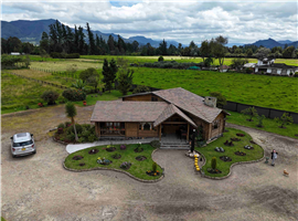 La propiedad dispone de 140 m² de área construida, con una sólida y acogedora estructura elaborada en troncos cilindrados de pino inmunizado, entrelazados en las esquinas. Presenta acabados en madera a la vista y piedra pizarra, que realzan su estilo rústico y natural.
